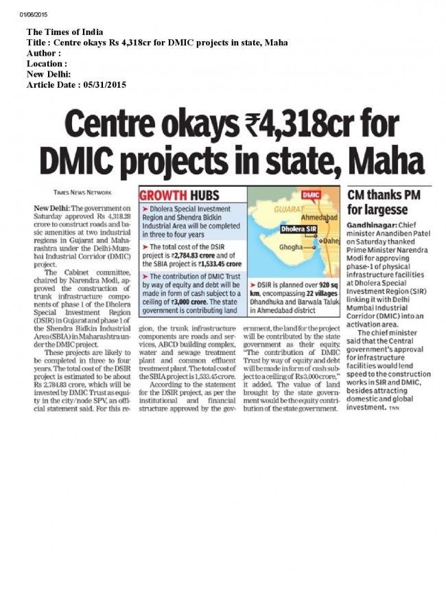 Centre Okays Rs. 4318cr For DMIC Projects In State, Maha